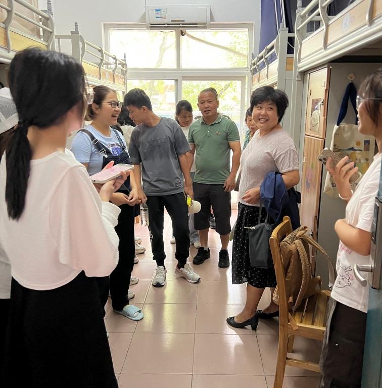 迎新工作如火如荼进行,院领导及辅导员先后来到韵苑13栋男生和2栋女生宿舍。学院党委书记徐晖亲切地和新生及送行的家长们交谈,了解他们对我校的第一印象及新生对自我未来的期许。徐书记感谢家长们的信任,鼓励新生科学规划学习生活,努力提高综合素质,珍惜大学时光,并留下联系方式希望与家长多多沟通。学院学生办主任陈介清老师仔细询问新生的宿舍安排情况,有无生活方面的困难,希望新生们互相帮助,尽快适应新环境进入学习状态。23级新生们纷纷表示,非常期待大学的学习和生活,希望能学习更多的知识和技能,度过丰富多彩的四年大学时光。家长们对学院报到期间的精心组织和周到服务表示感谢,希望孩子能够学有所获,学有所成。