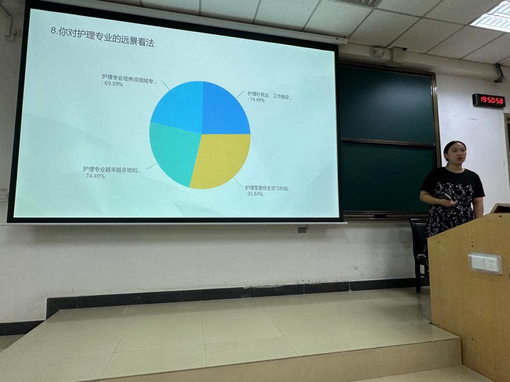 接着,教师班主任付文宁老师从“为什么要学护理”、“护理要学什么”和“学护理能做什么”三个层面,剖析了护理专业的课程设置和职业规划,鼓励新生们参加社会实践打好学科基础。