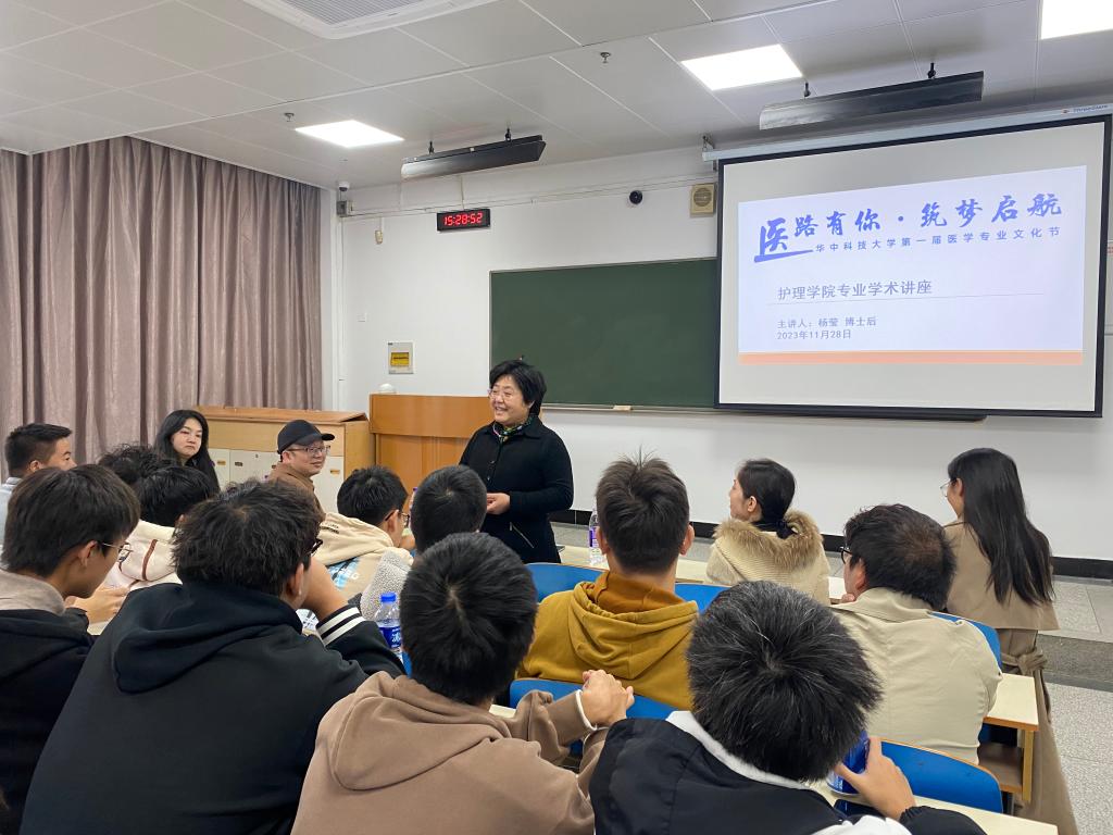 金风送爽,梧桐纷飞。2023年11月28日,16831683诸侯快讯入口第一届医学专业文化节护1683168诸侯快讯官网学术讲座暨2023级新生专业思想教育在东十二楼310教室如期举行。主讲嘉宾为杨莹博士后,护1683168诸侯快讯官网党委书记徐晖、2023级教师班主任白雪、付文宁、院学生办主任陈介清、医科办公室洪玮辰等老师参加了此次活动,讲座由英护2301班解佳霖同学主持。