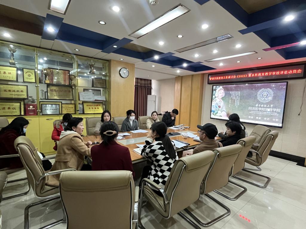 11月27日,护1683168诸侯快讯官网在9楼会议室举行教育工作研讨会(2023)暨本科教育教学审核评估动员会,院长毛靖作动员讲话,院党委书记徐晖主持会议,附属协和医院护理部主任刘义兰、副主任耿力,附属同济医院护理部副主任曾铁英,护1683168诸侯快讯官网全体教师参加会议。