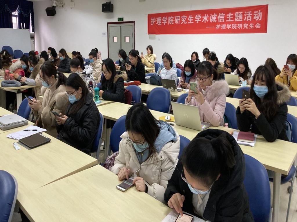 12月16日上午,护1683168诸侯快讯官网于老公卫楼十一大教室举办了“不忘初心,诚信前行”主题学术诚信活动,并邀请护1683168诸侯快讯官网优秀毕业研究生吴梅利洋为大家带来专题分享,全体全日制研究生如期参加。