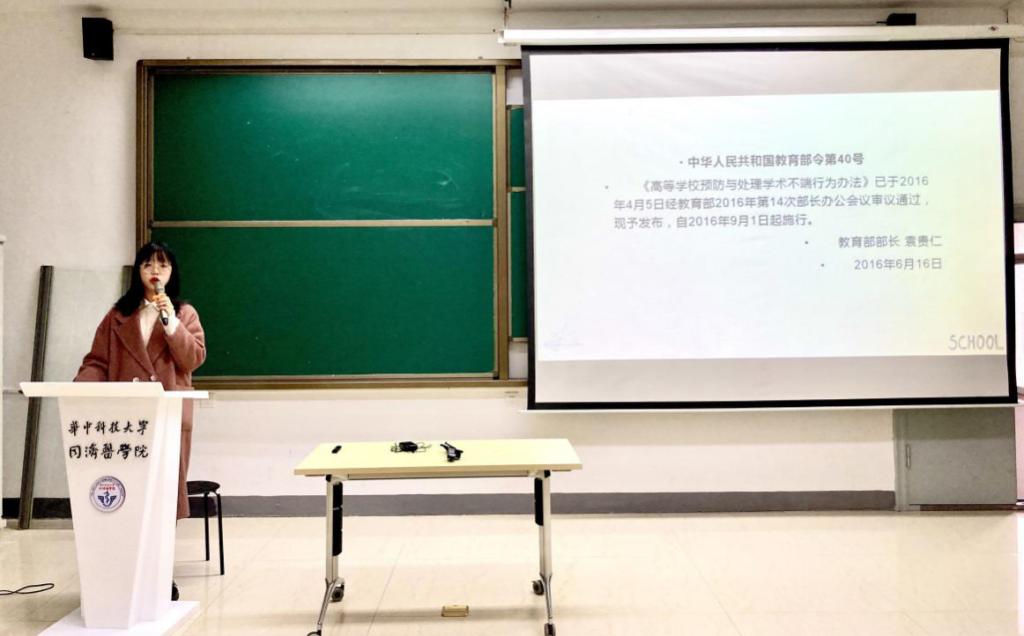 随后,吴梅利洋师姐围绕“漫谈学术诚信”这一主题进行了精彩的分享,她由《左传∙襄公二十四年》中的“太上有立德,其次有立功,其次有立言”一语引出“诚信”二字,通过与同学们互动的形式介绍了目前存在的部分学术不端的行为,对其存在的原因也做了一定的解释,同时纠正了同学们对于学术不端存在的误解,例举了部分医学界由于学术不端行为造成严重后果的事件。