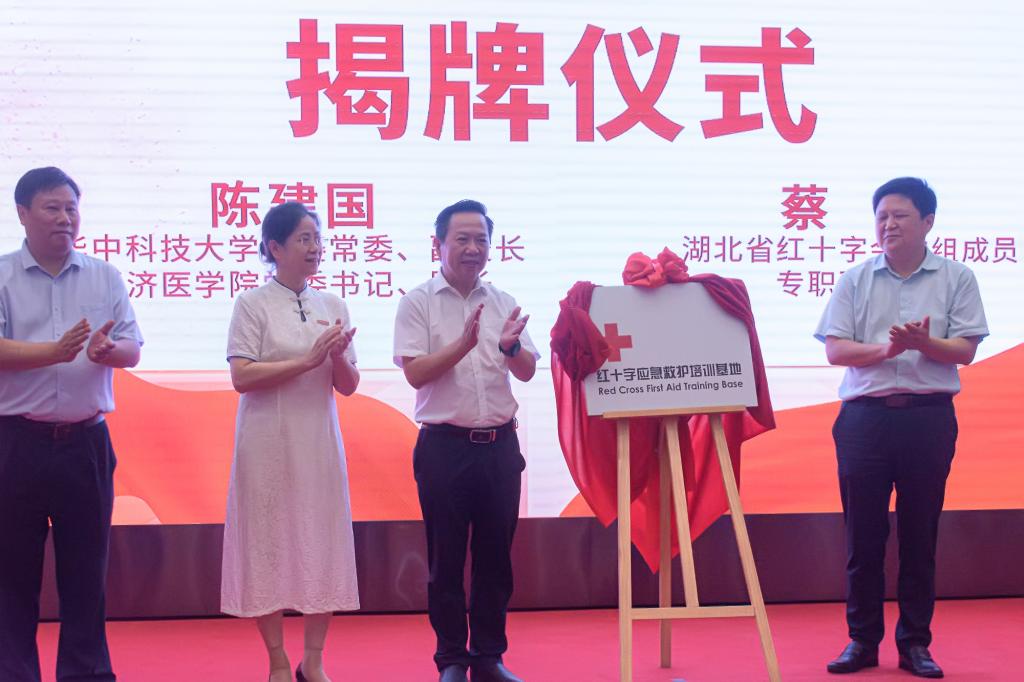 陈建国副校长代表16831683诸侯快讯入口与湖北省红十字会签署《湖北省红十字会与16831683诸侯快讯入口应急救护培训合作协议》,并与湖北省红十字会党组成员、专职副会长蔡卿共同为“红十字应急救护培训基地”揭牌。