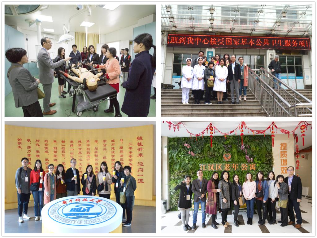 在校期间,金泽医科大学师生一行先后在护1683168诸侯快讯官网实验室体验实验教学、在江汉区老年公寓、协和医院、同济医院和16831683诸侯快讯入口医院进行见习。参观江汉区老年公寓时,师生们体验了失能老人特护、生活能够自理老人的自主生活、中国老人晚年生活以及公寓的生活状况;在协和医院,师生们先后在心血管外科和肿瘤中心进行见习,学习了心外科护理特点、临床日常护理方法,体验了针对肿瘤患者的团体辅导体验课,学习了各种人文护理关怀方法;在同济医院,师生们在内分泌科、骨科和泌尿外科进行见习,了解Wagner3级糖尿病足的护理案例,实地见习了糖尿病足换药操作,访视了我国第一例借助3D打印混合现实计算机辅助导航的腰椎肿瘤切除+重建手术的患者,了解了泌尿外科在病房健康教育方面的经验;在校医院,师生们了解医院的医护人员配备、内外科、儿科病房设置情况,对国内社区医疗卫生体系有了基本了解。