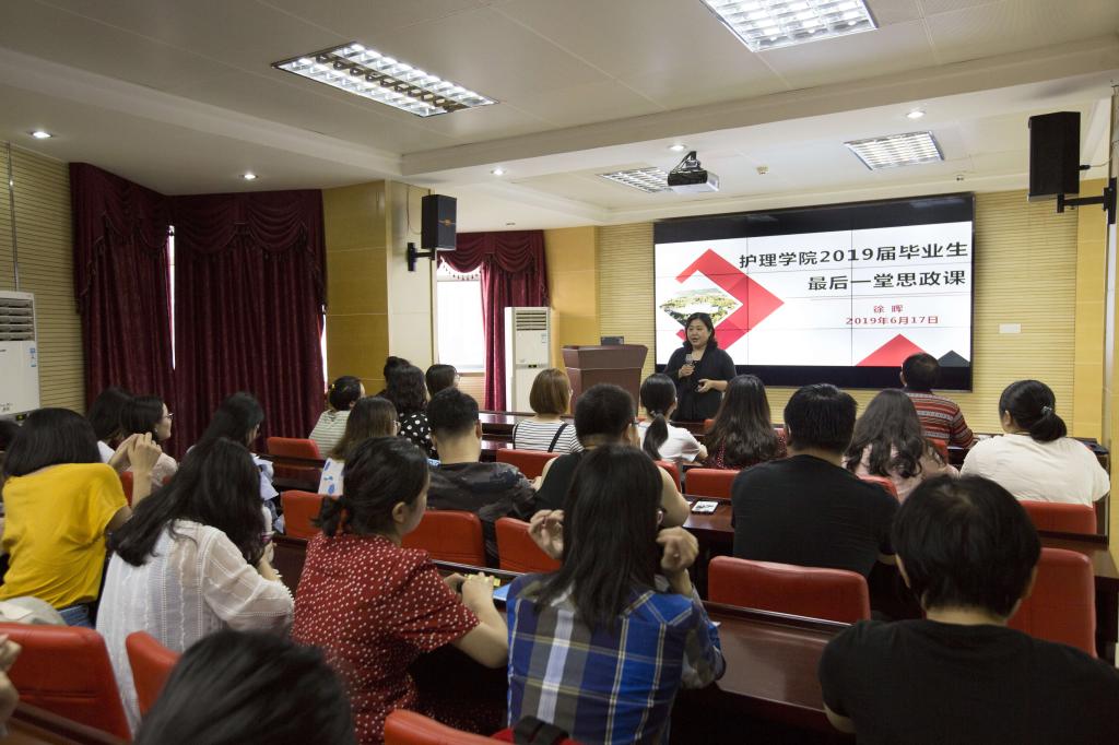 6月17日下午4时,护1683168诸侯快讯官网2019届毕业生“最后一堂思政课”活动在学院8楼会议室举行。护1683168诸侯快讯官网党总支书记徐晖,本科生、研究生辅导员以及全体毕业生参加活动。