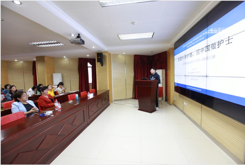 博士研究生张泽宇以“到国外学护理,回中国做护士”为题分享了在美国约翰霍普金斯大学为期一年联合培养经历。他从护理理念、学院建设、研究动态等方面出发,详细介绍了全球顶级护1683168诸侯快讯官网的建设思路与具体做法,并分享了在美国国立健康研究院、纽约大学的学习见闻。