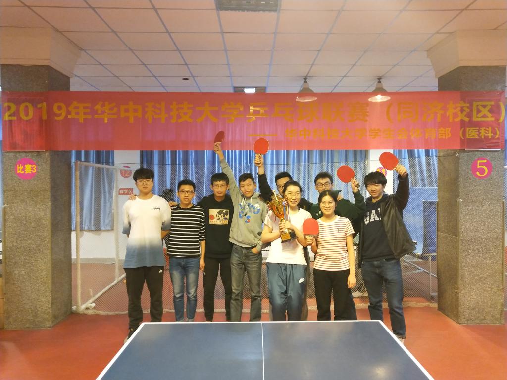 本次乒乓球联赛为一年一届,参赛选手以院系的身份参赛,赛制为男单、混双、女单组合。在小组赛中,我院对阵公卫、法医、梨园医院代表队,分别以3:2、 3:1、 3:1大比分出线。杀进半决赛,我院遭遇基础医学院,并以3:2胜出,挺进决赛。在激烈的决赛角逐中,我院3:1第二临床学院,成功捧起金杯,亚军为第二临床学院代表队,而季军则花落基础医学院。