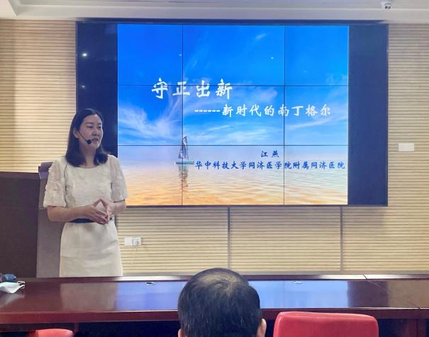 江燕护士长以其严谨的专业性,充实的内容,平易的语言将百年同济的两种风貌:“守正”与“创新”,贯穿于整场报告会。守住的是同济历经百年沧桑不曾改变的救死扶伤,严谨求实的人文底色,创新的是接轨国际乃至引领国际的护理新科研模式,为维护世界公共卫生安全不断作出新的贡献。