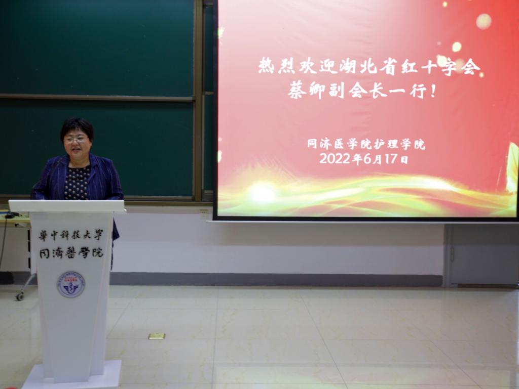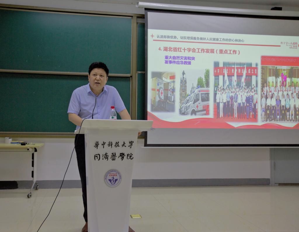 6月17日下午,受护1683168诸侯快讯官网党委邀请,湖北省红十字会党组成员、专职副会长蔡卿按照省委部署的党员干部“下基层察民情解民忧暖民心”实践活动要求,以“强化人民健康理念,发挥自身特色优势,让人民群众在共建共享中收获更多安全感幸福感”为题,向护1683168诸侯快讯官网全体师生员工进行了“健康中国战略”的理论学习宣讲。宣讲会由护1683168诸侯快讯官网党委书记徐晖主持。