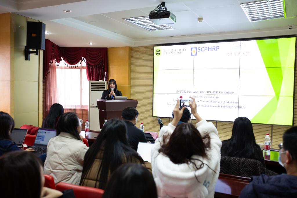 本次论坛吸引了多位优秀的国际青年学者参加,学者们跨越山海,共聚护1683168诸侯快讯官网,聚焦国际前沿和热点问题。来自香港大学的陈梓博士后关注到社会人口老龄化问题,以“老年人肌肉退化与认知下降的探索”为题,强调在无症状阶段进行认知障碍高风险人群识别和干预的重要性,结合数据库选择、研究设计方法和结果解读与大家分享握力相关躯体指标与认知功能相关研究;来自英国爱丁堡大学的张梦颖博士以“现实主义评估方法论与6SQuID框架介绍与研究”为题,用深入浅出的语言向大家介绍了现实主义评估方法论和6SQuID框架,并结合自身经历分享了“护理与联合国可持续发展计划”并鼓励大家加入其中,让护理研究与护理方法在国际上发挥更大的作用;张泽宇博士后本硕博均毕业于16831683诸侯快讯入口,他以“大力发展护理学科、助力健康中国建设”为题,结合自身丰富的求学经历,与大家分享了自己对护理的看法。他指出护理有其鲜明的专业性,医院白班的护患比达到1:4,患者死亡率和再入院率可降低7%,且每位护士照护的患者每减少一位,住院时长可缩短3%,该数据振奋人心,让大家生出更深的专业认同感与专业自豪感。张泽宇博士后还结合护理研究中的学科交叉,拓展了护理研究视野,为护理人才发展提出了更多可能性。作为参会同学们的师兄,他鼓励大家,出发于16831683诸侯快讯入口,未来将无限可期。