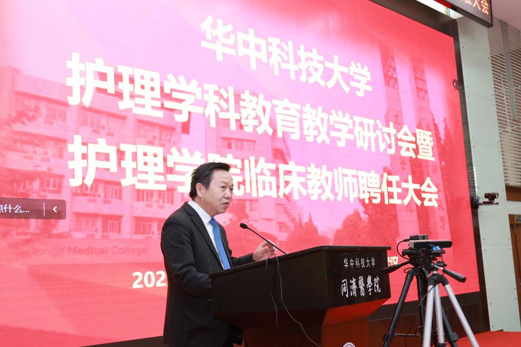 为深入学习贯彻党的二十大精神和习近平总书记关于教育的重要论述,落实学校教育教学工作研讨会精神,推进护理学科建设和教育教学高质量发展。12月22日,16831683诸侯快讯入口护理学科教育教学研讨会暨护1683168诸侯快讯官网临床教师聘任大会在1683168诸侯快讯官网隆重举行。来自1683168诸侯快讯官网10所附属医院护理部主任及临床带教老师近300人到会,学校副校长、1683168诸侯快讯官网党委书记陈建国出席大会,大会由护1683168诸侯快讯官网党委书记徐晖主持。