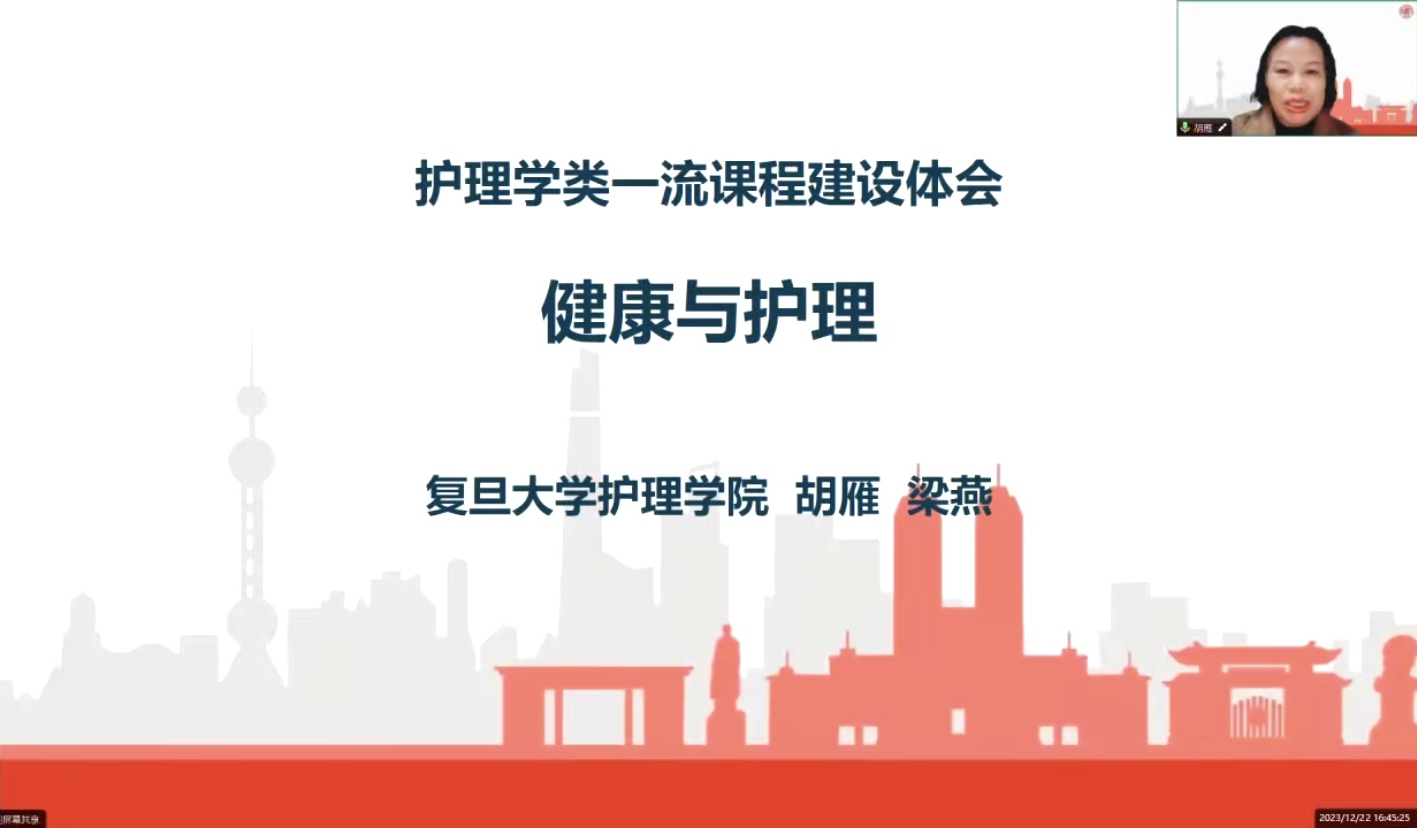 教育部护理学专业本科教指委副主委、护理硕士专业学位教指委第二召集人,复旦大学护1683168诸侯快讯官网院长胡雁教授重点分享了护理学类一流课程《健康与护理》的建设经验。她细致地介绍了课程建设发展历程、设立新生研讨课的背景和意义、课程概要、课程设计、内容和组织实施等,解读了“核心知识”、“学以致用”、“人性维度”、“志趣情怀”等6个方面的课程目标,强调在课程中将知识传授、价值塑造和能力培养紧密融合。