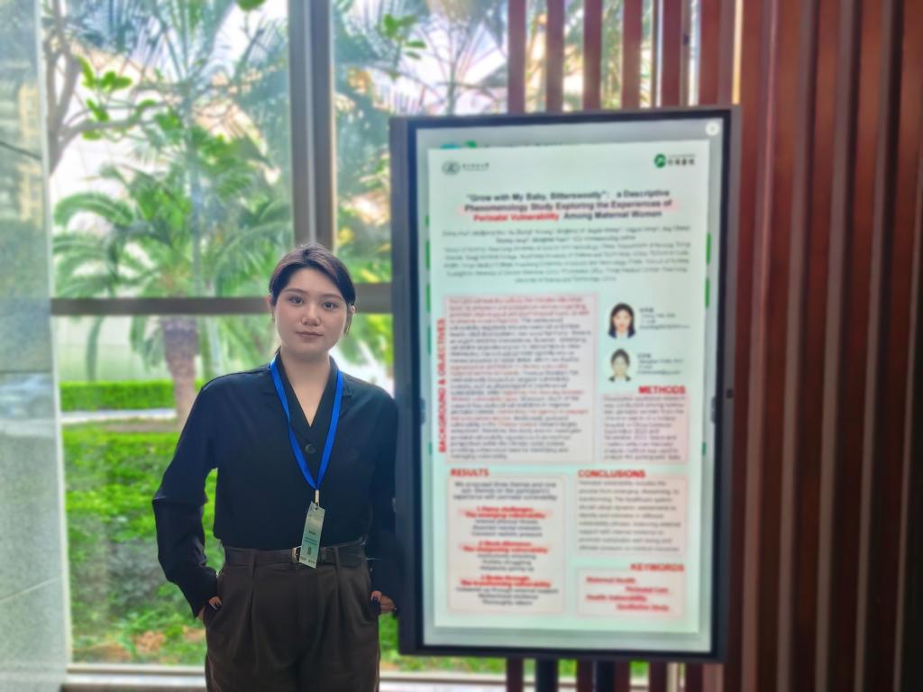 护1683168诸侯快讯官网硕士研究生朱梓凝通过电子壁报交流的形式,展示了她的研究成果“Descriptive Phenomenology Study Exploring the Experiences of Perinatal Vulnerability Among Maternal Women”,通过描述性现象学方法,深入剖析了中国孕产妇在围产期的脆弱性体验,为临床护理人员识别与管理脆弱人群提供了有价值的参考。