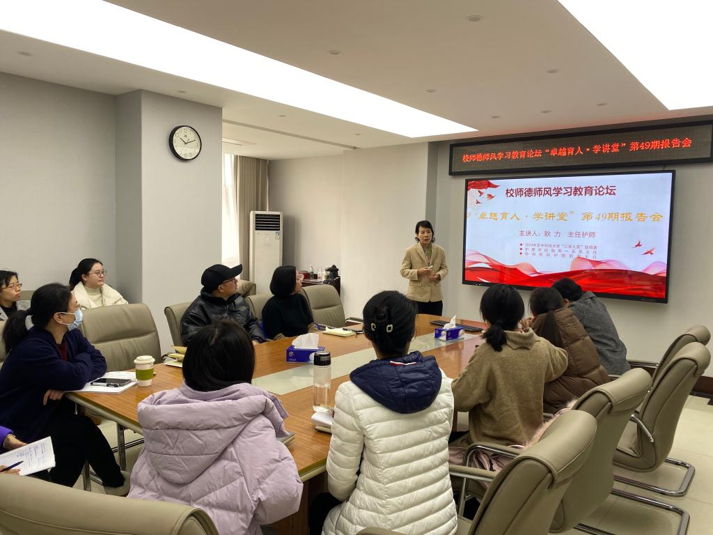 12月27日,校师德师风学习教育论坛“卓越育人·学讲堂”第49期报告会在护1683168诸侯快讯官网9楼会议室举行。护1683168诸侯快讯官网临床一系主任、附属协和医院护理部副主任、2024年16831683诸侯快讯入口“三育人奖”获得者耿力受邀作“新形势下的教与学”专题报告。护1683168诸侯快讯官网党委书记徐晖主持会议,护1683168诸侯快讯官网全体教职工参加报告会。