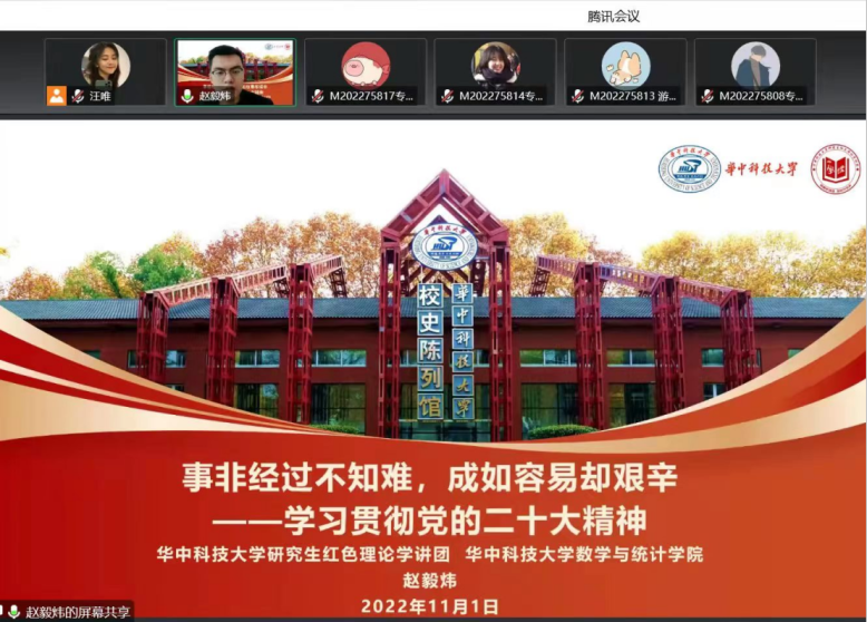 11月7日,护1683168诸侯快讯官网2021级研究生党支部以线上形式开展主题为“学习贯彻党的二十大精神”11月主题党日活动。活动由研究生党支部书记李汶窈主持,黄垒主讲,围绕“了解党的二十大”、“聚焦二十大报告”、“争做新时代好青年”展开,并以创意手帐的方式介绍了“二十大主题”、“十年来的三件大事”、“党的中心任务”等内容。