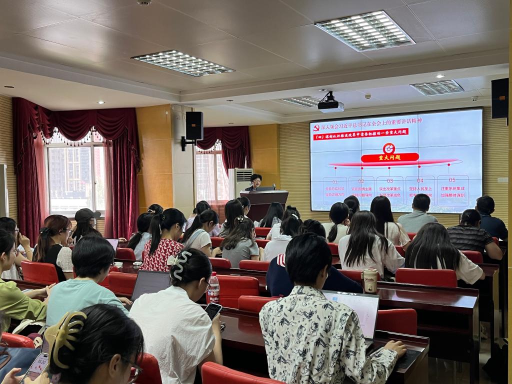 徐晖以《深入学习贯彻党的二十届三中全会精神》为题,用生动的语言从会议基本情况及筹备过程、深入领会习近平总书记在全会上的重要讲话精神、深刻把握《决定》的精神实质和内涵要义、认真落实全会关于深化教育综合改革的新部署新要求四个方面对党的二十届三中全会精神进行了系统阐述和深刻讲解。
