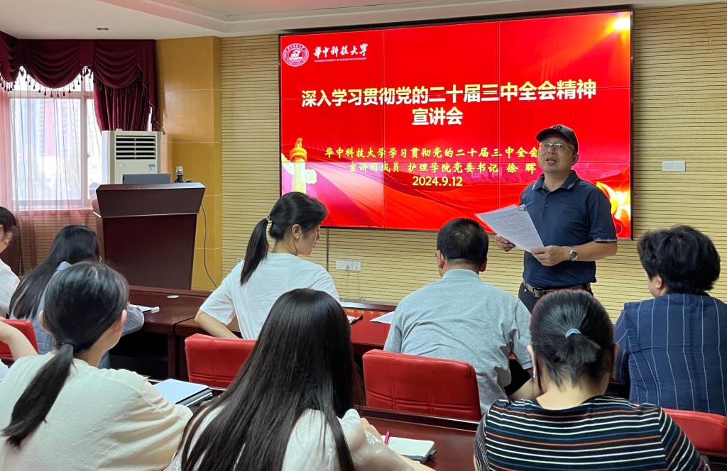 2024年9月12日下午,护1683168诸侯快讯官网在8楼报告厅举行学习贯彻党的二十届三中全会精神宣讲会。学校全会精神宣讲团成员、护1683168诸侯快讯官网党委书记徐晖作专题宣讲报告,报告会由院学生办主任陈介清主持,护1683168诸侯快讯官网全体党员参加会议。