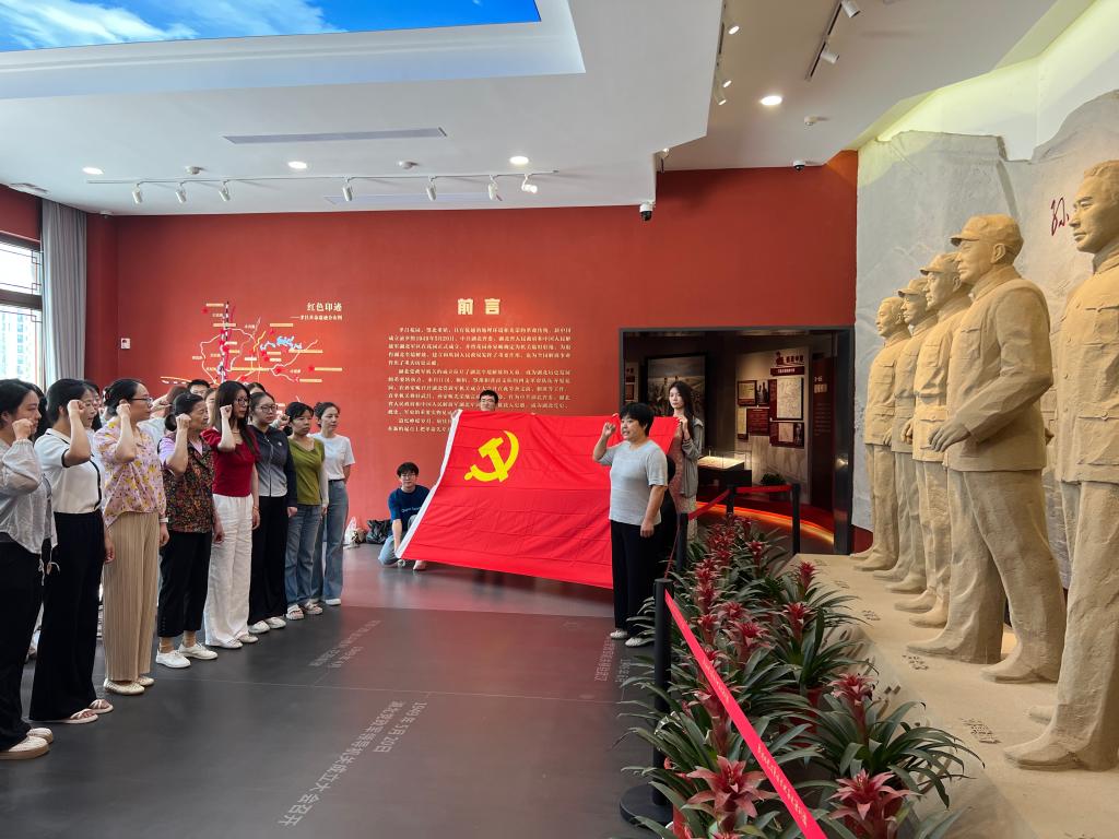 活动伊始,全体党员走进孙家畈革命旧址,参观孝昌革命史陈列馆,开展沉浸式党性教育。在讲解员的引导下,大家观看红色宣传片,参观历史实物,深入了解孝昌作为新湖北党政军诞生地的背景故事,追忆李先念、王任重、王宏坤等革命先烈的英雄事迹,感悟他们为国为民、无私奉献的崇高精神。在徐晖书记的带领下,全体党员面向党旗庄严宣誓,重温入党誓词,铿锵誓言展现出党员同志们昂扬向上的斗志和为共产主义事业奋斗终身的决心。